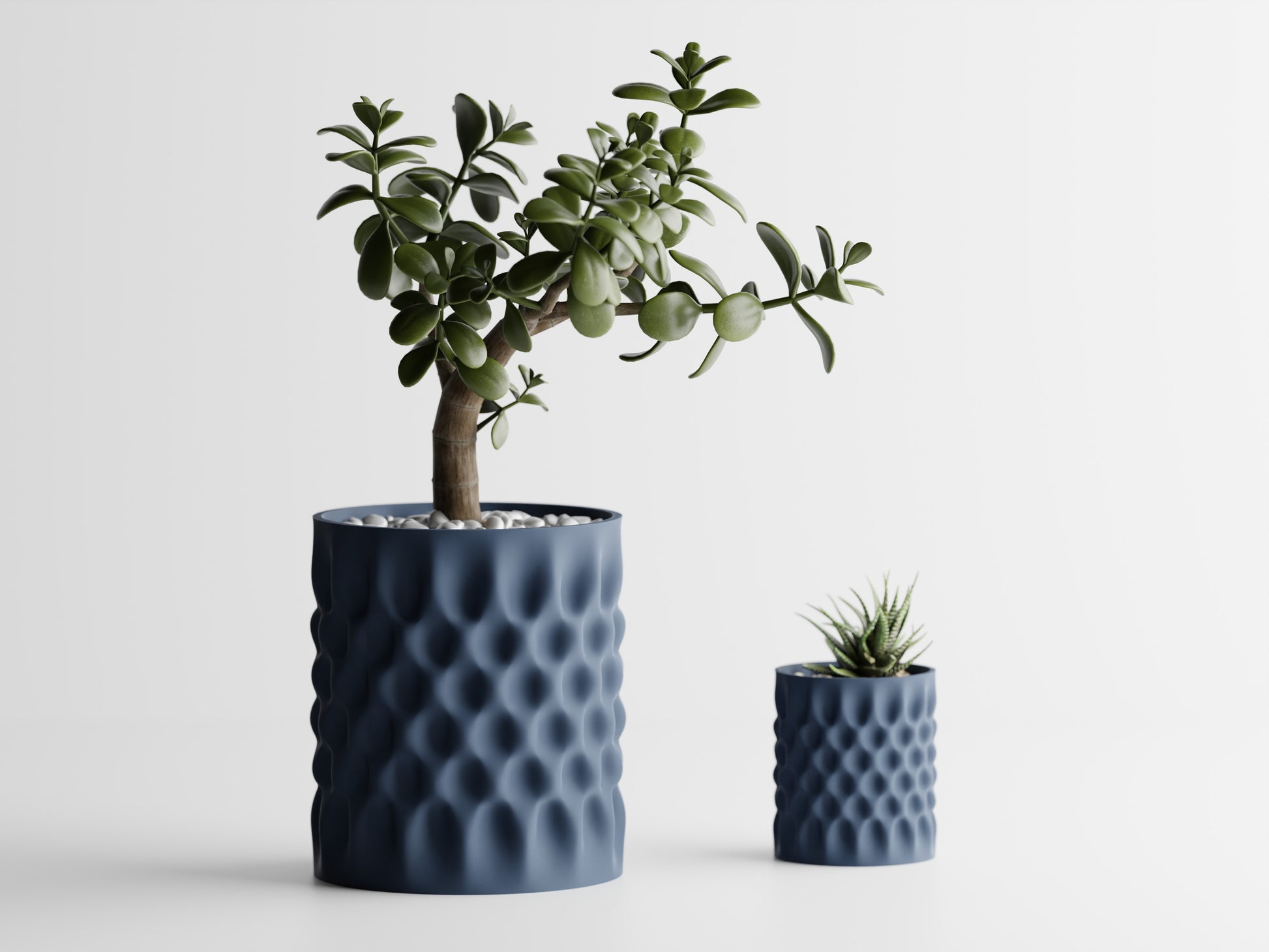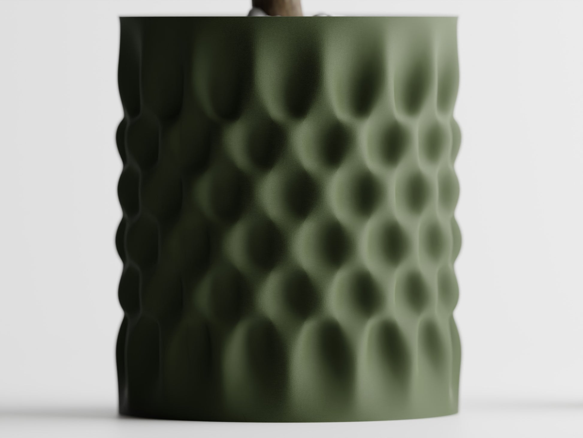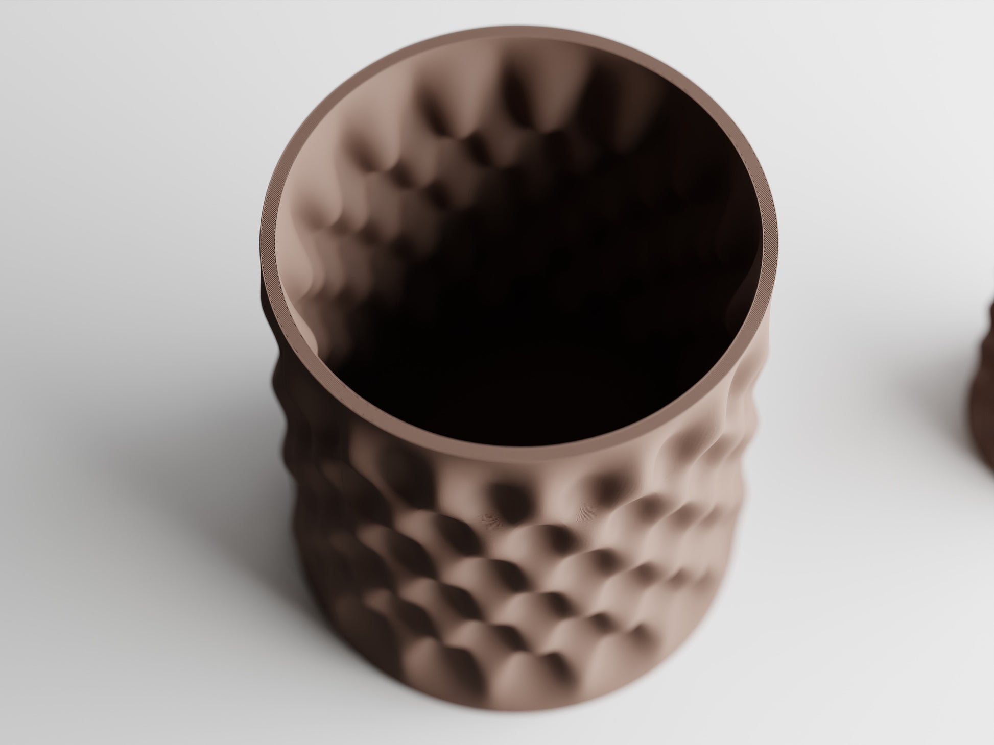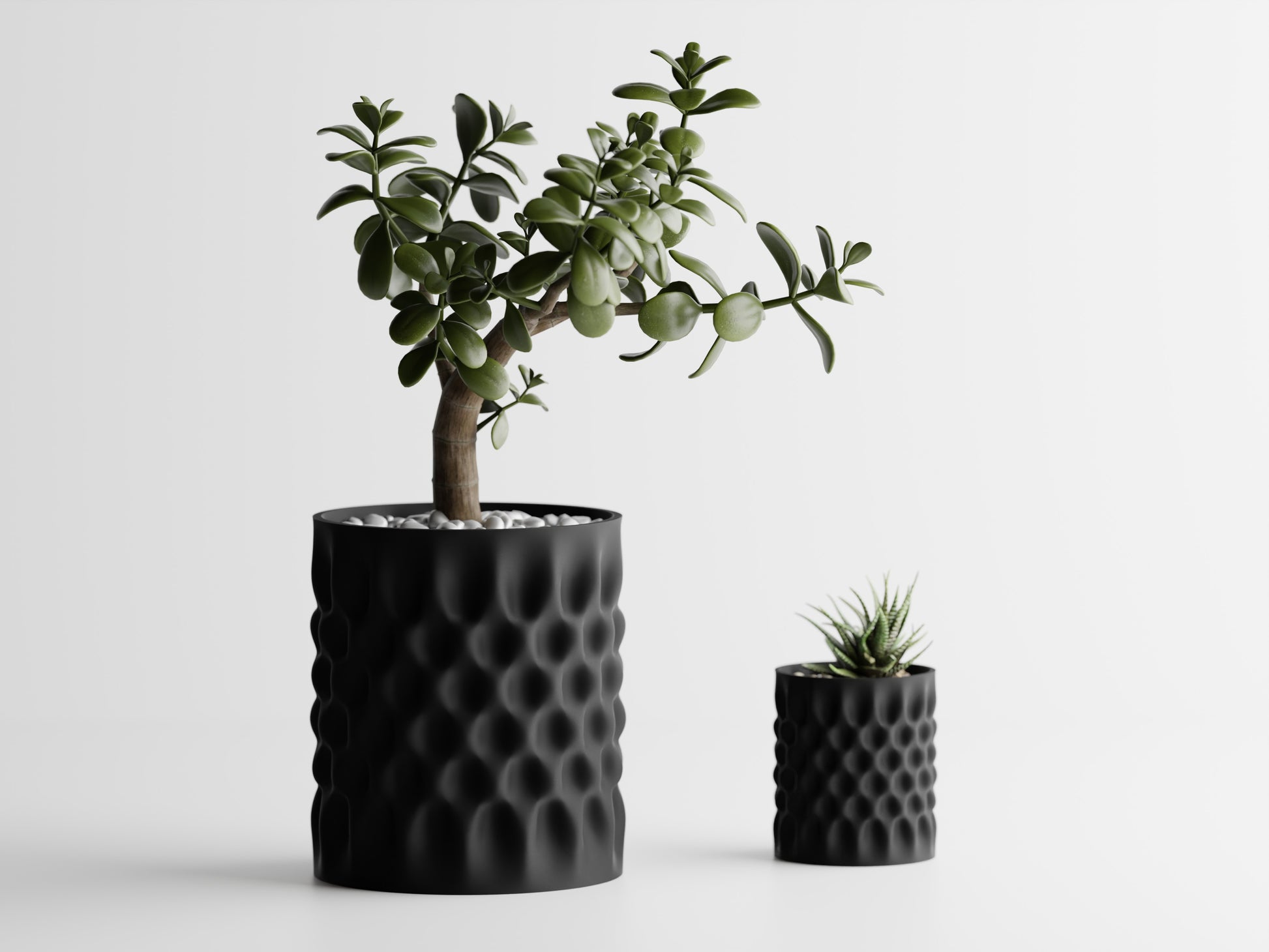 Dent Straight Urtepotte kombinerer et rent, cylindrisk formsprog med en karakteristisk, organisk overflade. De bløde fordybninger i potten skaber et levende spil af lys og skygge, som giver designet dybde og et moderne udtryk – uden at tage fokus fra planten.
