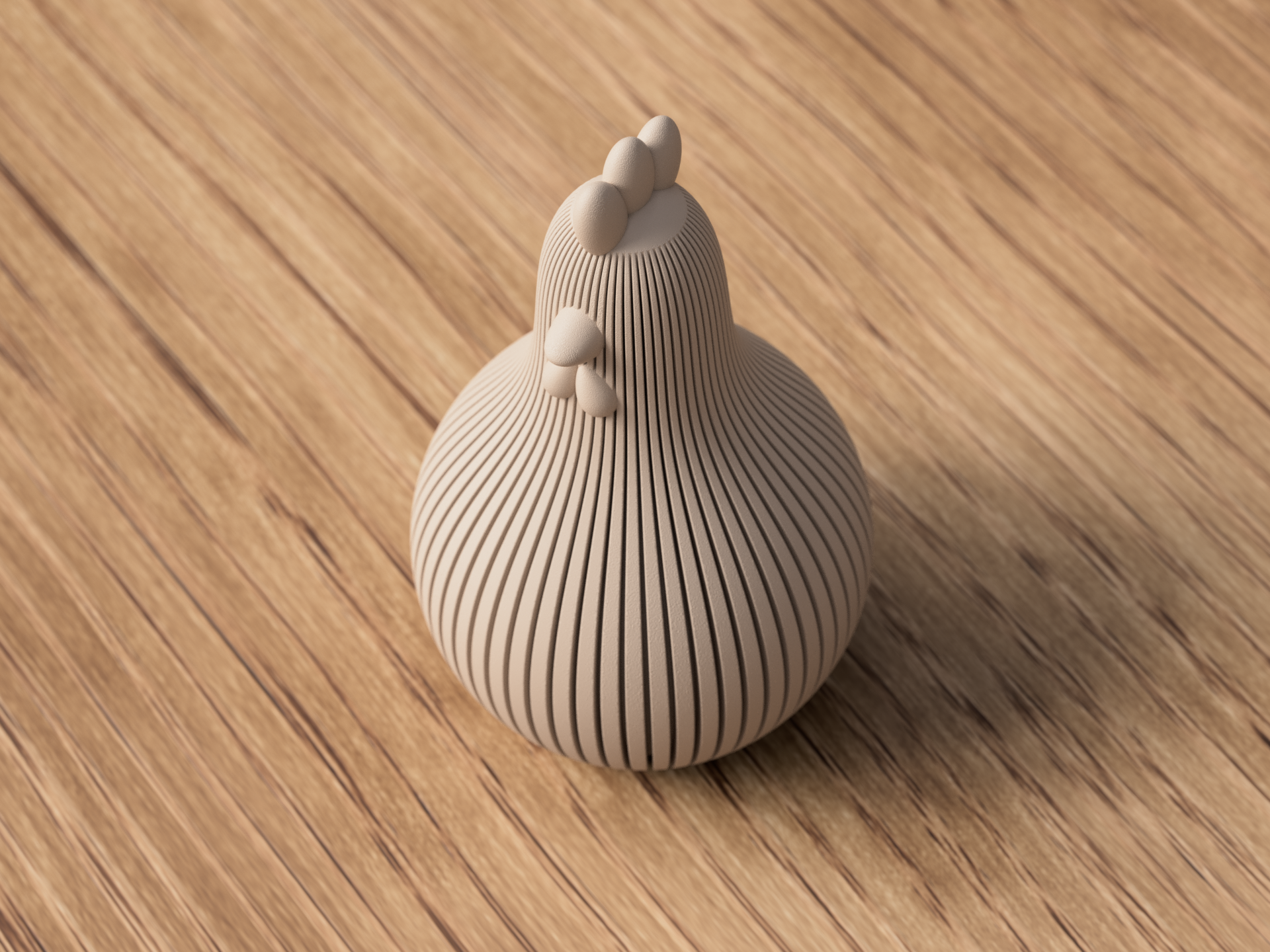 Denne dekorative kylling kombinerer et moderne, minimalistisk design med et blødt og indbydende udtryk. Den elegante, riflede overflade skaber en smuk struktur, som giver liv og dybde til formen, mens de enkle, afrundede linjer tilfører et stilrent og harmonisk look. De små, fine detaljer giver kyllingen personlighed uden at bryde det rene design.