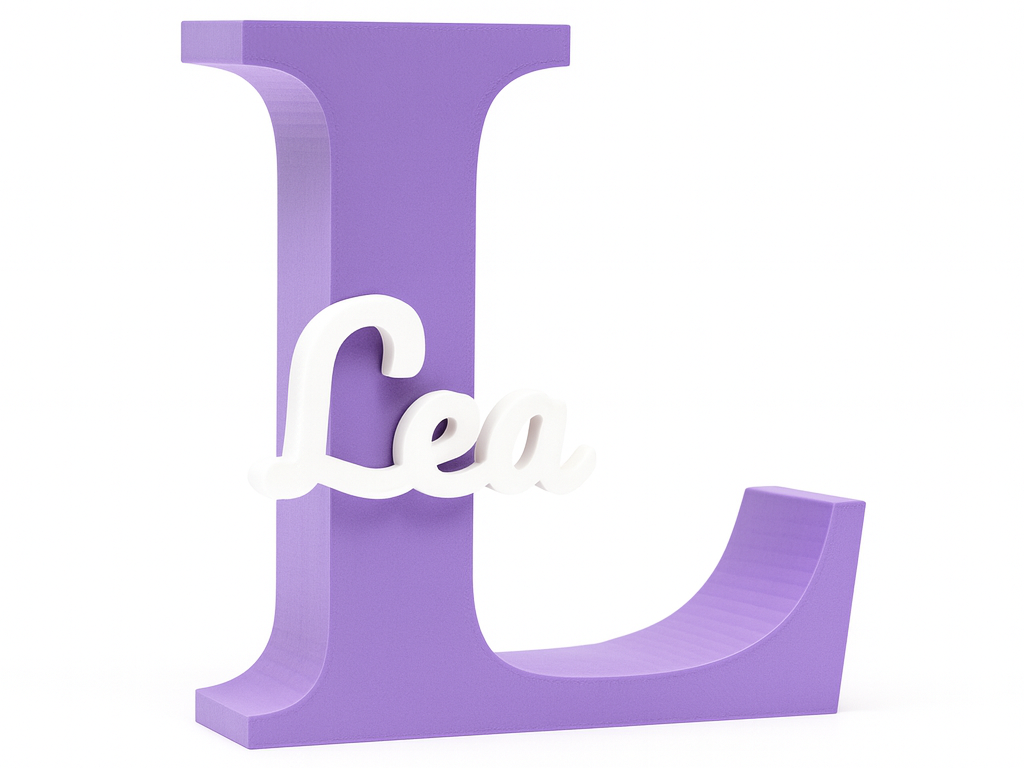 Gør børneværelset ekstra personligt med et stort 3D-printet bogstav med navn. Denne dekorative og farverige detalje kombinerer barnets forbogstav med det fulde navn, som smukt svæver hen over bogstavet i en anden farve. Du vælger selv både bogstav, navn og farvekombination, så det passer perfekt til netop dit hjem eller som en gave.