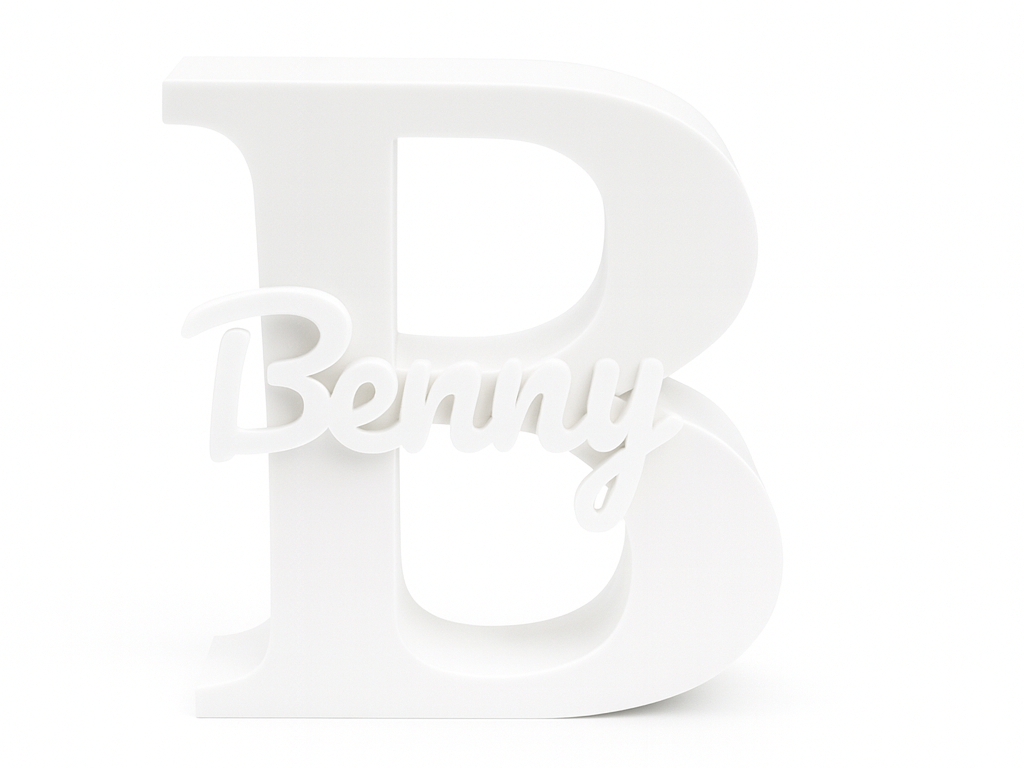 Det store bogstav fungerer både som pynt og som en sjov måde at vise navn frem på - og det er ideelt til reolen, vindueskarmen eller som en del af indretningen på børneværelset. Det er også en oplagt gaveidé til barnedåb, fødselsdage eller bare som en lille personlig overraskelse til én, du holder af.